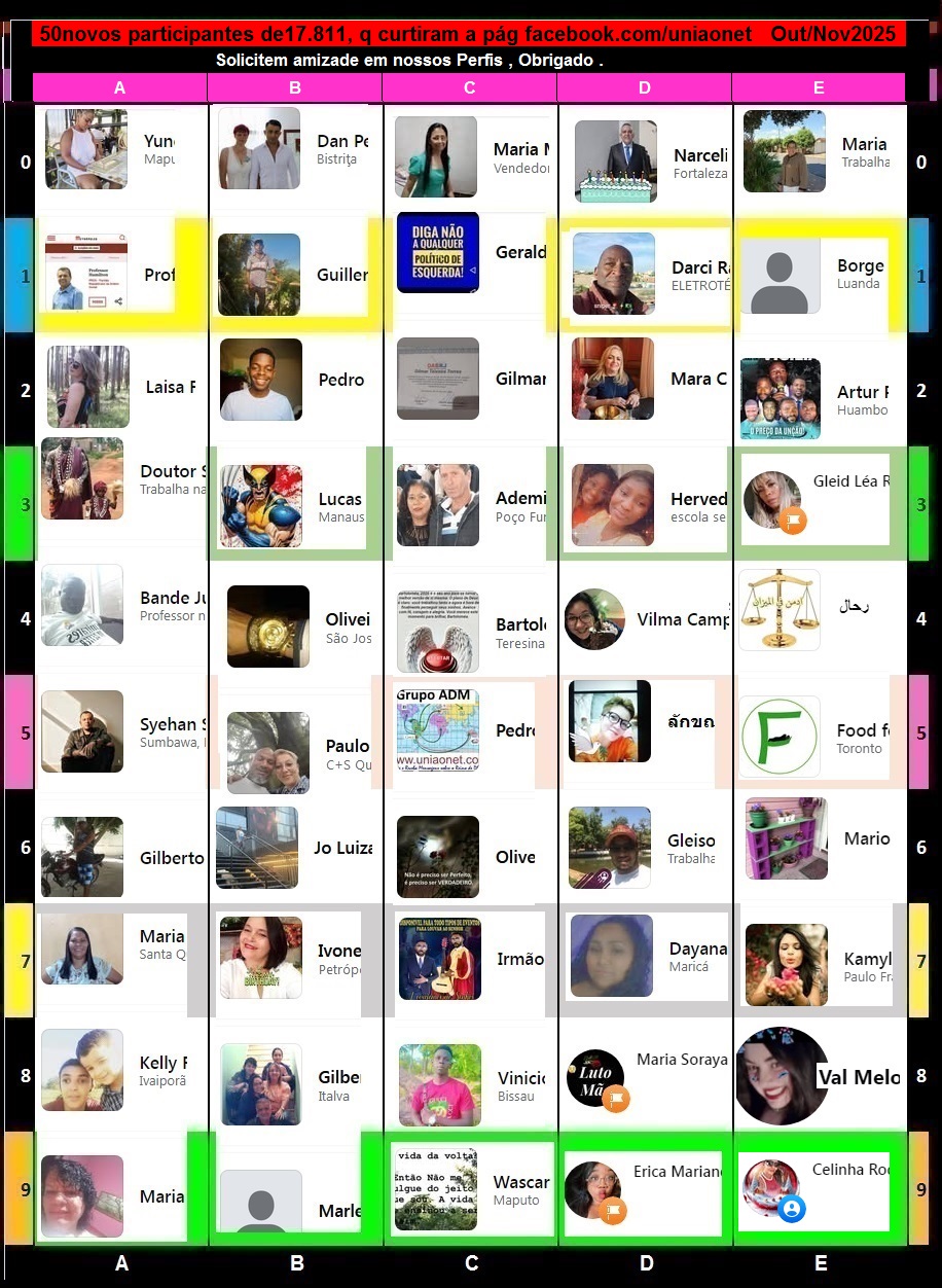 B8 Yaya Leuhena B9 Auri Paiva C1 Ermelinda Kellen D0 ademir vieira D1 Ines de