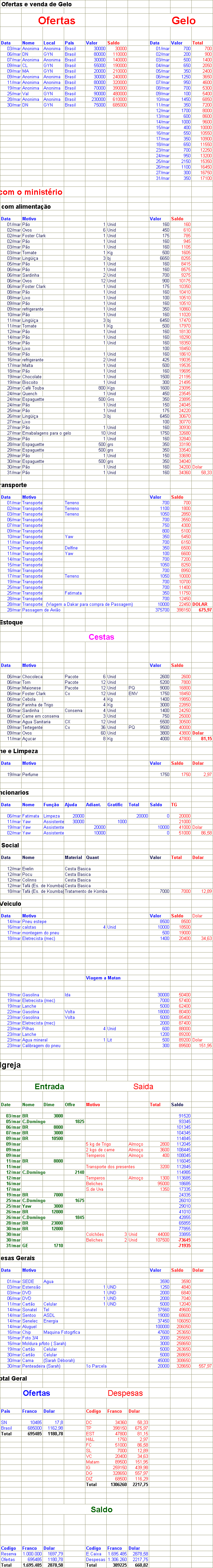 o nosso relatório de despesas e as ofertas que nos é enviada por voces.