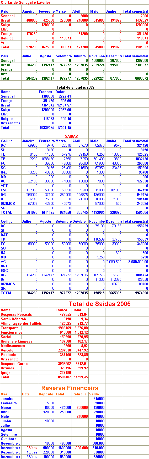 Relatório Financeiro de : Março/2006 - Rubens/Senegal