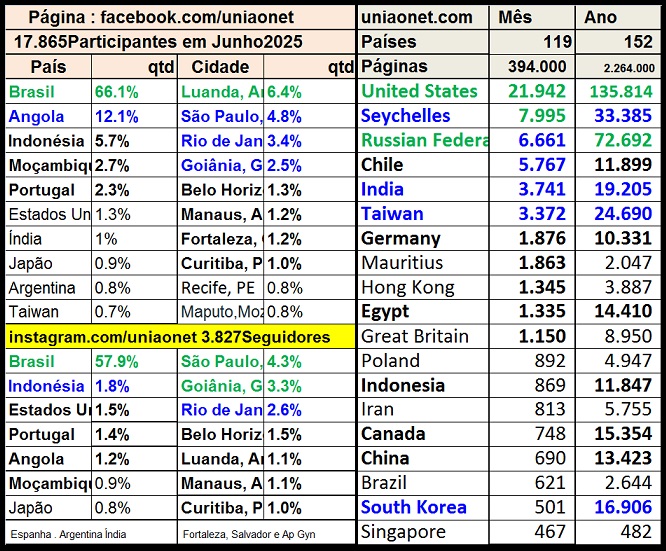 - Ano XXIV Referência ás informações recebidas na Rede www.uniaonet.com na Quadrisemana de 14/6a11/7/2025 (Íntegra dos semanários 1320a1323) |