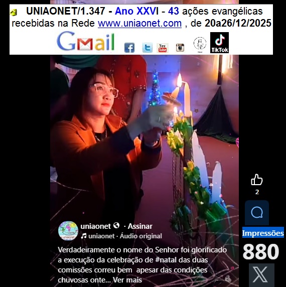 , de 22a28/11/2025O conteúdo integral está disponível no Portal , é de livre reprodução . Caso sua mensagem (ou alguma outra que voce recebe) não conste deste informativo favor nos reenviá-la . Necessitamos de estar em comunhão com o corpo de CRISTO , compartilhe conosco o que Deus tem feito no seu dia a dia , na sua igreja , no seu bairro , cidade ... II