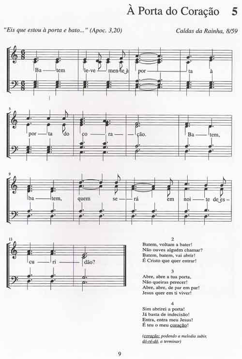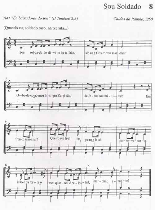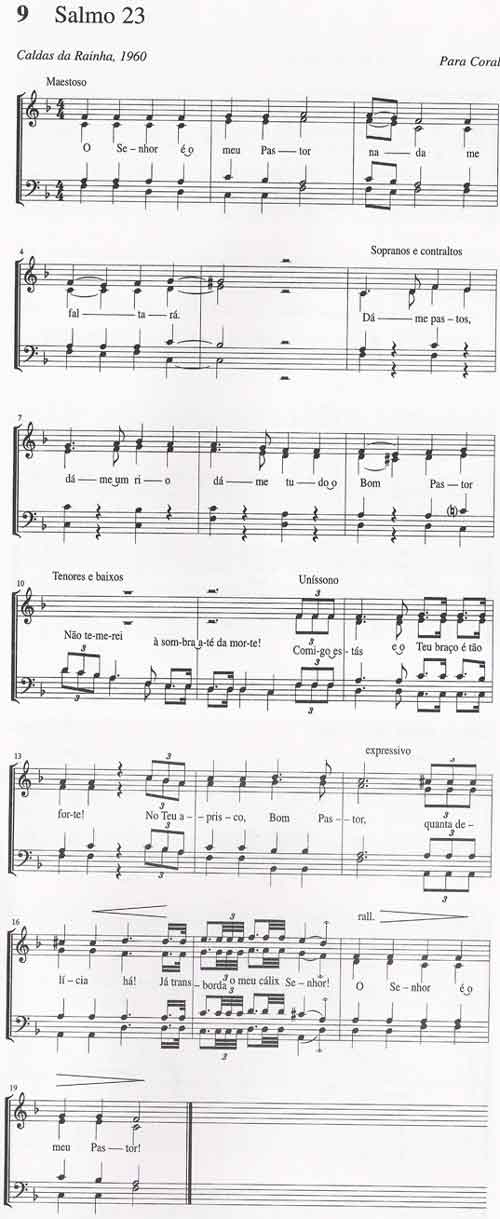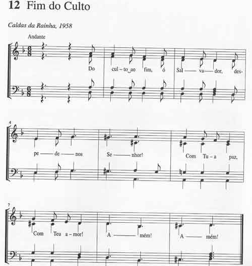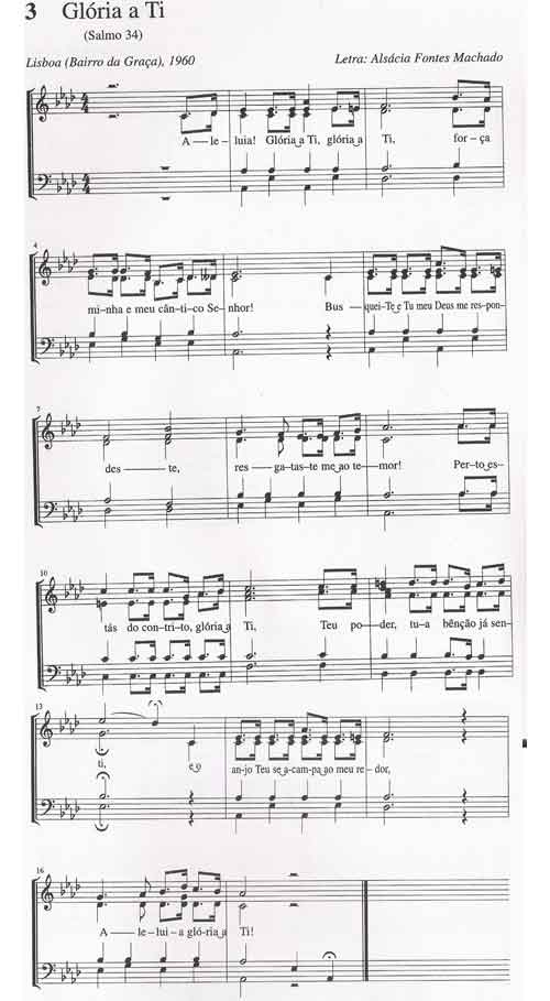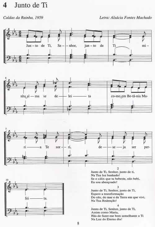 evangelização, na pregação, na visitação, no convívio cristão... Era também organista da igreja a ali dirigi um "Grupo Coral". Entretanto a igreja promoveu a minha ordenação e tomei posse do pastorado da mesma, com 20 anos de idade. Esses cânticos, ali escritos ao órgão da igreja e alguns cantados pelo referido "Coral", têm a ver com a liturgia da celebração cultual ("Doxologia", "Pai Nosso", "Salmo 23", "Fim do Culto") e com temas centrais da fé e da vida cristã ("Cruz", "Amor", "À Porta do Coração"). O hino "Junto de Ti" resultou da musicação do poema de uma grande amiga, poetisa e esperantista, que eu mesmo baptizei, a ela e à sua filha adolescente, lá nas Caldas da Rainha. Quando iniciei a minha vida militar, em Lisboa,