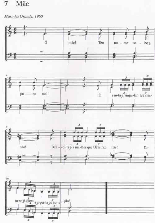 eterno dom de Deus, o AMOR! 07- Mãe (Marinha Grande, 1960) Ó mãe! Teu nome sabe a puro mel! É santa e singular tua missão! Bendita é a mulher que Deus faz mãe! Ditoso é quem a aperta ao coração! 08- Sou Soldado (Caldas