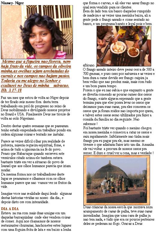 para o Niger nao mandei noticias a voces com detalhes, a nao ser pequenas