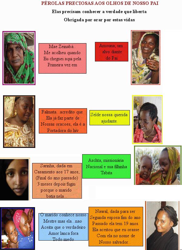 Aqui estou mais uma vez "conversando" com vocês o que o Pai tem ministrado no meu coração, e claro eu agradeço pois isto me dá sempre uma forte convicção que não estou sozinha neste desafio de levar seu amor à todos os povos em especial os que nunca ouviram falar de sua salvação. Amados por favor leia todo este email e fiquem a vontade para "conversarem comigo" Durante estes pouco mais de 10 anos eu tenho dedicado toda minha vida ao País do Chade e sempre pensei que viveria lá por no mínimo 15 anos... Este era o meu alvo, mas o Senhor é quem escreveu nossa história e Ele é quem determinou todos os nossos passos e Seu prazer é que o obedeçamos., e como serva faço minhas as palavras do versículo de que diz - EIS-ME AQUI PARA FAZER Ó DEUS A TUA VONTADE". Hb. 10:7 e AGRADÁ-ME FAZER A TUA VONTADE Ó DEUS. Sl 40:8 Em 2007, Deus falou claramente de diversas maneiras que meu tempo no Chade havia terminado, que Ele havia concluido o que eu deveria fazer lá e que Ele estaria me levando para outras nações - Claro que não aceitei, briguei, chorei, conversei, tentei convencê-lo, mas sentia no meu coração que deveria obedecer. Porém para minha alegria Ele me deu mais um periodo que foi de 2007 a setembro de 2009, e neste periodo coloquei "a casa em ordem", reorganizei os trabalhos com as mulheres, conversei bastante com toda s minha liderança, preguei o evangelho em tempo e fora de tempo, vi nos olhos daquelas mulheres lágrimas depois de orarmos no nome de nosso Salvador Jesus Cristo , vivi o ultimo periodo de guerra, estive muito mais que envolvida mas principalmente comprometida com aquele povo e nação, sempre buscando ver em Deus uma mudança de planos, esperando que Ele falasse que eu poderia continuar... ...Mas não aconteceu, muito pelo contrario, neste mesmo periodo de "despedida do Chade" Ele através de sonhos, confirmando através de outras pessoas me mostrou uma outra nação, a MAURITANIA, no Norte da Africa, não sei até que ponto vocês a conhecem, mas desde já eu conto com vossas orações. Sei que é um desafio muito grande, na verdade bem maior que o Chade, mas o Senhor tem me confirmado a cada dia, por isto estou vos escrevendo pois já estou me preparando para sair do Brasil no inicio de 2011, sei que o tempo passa rápido e meu principal objetivo neste tempo é "vos apresentar esta nação e fazer dela o alvo de vossas orações", eu vi com os meus olhos Deus mudar a sorte do Chade por causa das fiéis orações de cada um de vocês e de toda igreja, e sei que o mesmo e muito mais o Pai da vida pode fazer pela Mauritania e pelo seu povo, por isto meus amados Parceiros abracem mais uma vez minha vida junto com este grande e novo desafio chamado Mauritania. Eu tenho procurado me informar e buscar de Deus qual o Seu plano para minha vida lá. Já sei que existe uma escola de línguas Um trabalho com presidiários, masculino e feminino, e também recebi uma proposta de um casal que trabalham no norte do Senegal na cidade divisa com a Mauritania, eles atravessam duas vezes por semanas e entram para fazer trabalhos com criancas Mauritanas. De alguma forma estou vendo Deus abrir portas e me conduzir. Meu pedido principal a todos vocês é que eu possa estar sensível a voz do Santo Espirito para entender d'Ele os passo que preciso dar. Orem também por todos os mantenedores para que continuem firmes pois será um novo começo, no Chade eu já estava bem estruturada, mas vou ter que começar do "zero", que os mantenedores continuem firmes no propósito de nos ajuda financeiramente. Aos poucos e com mais frequência estarei enviando emails dos passos e dos desafios neste periodo. Então amados, eu vos deixo oficialmente informados de que não voltarei mais para o Chade e que estarei me preparando para voltar a África sim, mas, desta vez para o país da Mauritania. Por favor sintam-se a vontade para orar por mim e também me enviar palavras segundo o que o Santo Espirito ministrar em vossos corações. Um bem forte e carinhoso abraço e que o Pai da vida leve a bom termos mais esta longa jornada. No amor e na fidelidade do Pai e até que todos o conheça. Jozineide (neidinha) Bom final de semana. 11/02/2010 Quero agradecer de todo meu coração por suas fiéis orações, muito obrigada mesmo. Estive estes ultimos 10 dias no Rio de Janeiro, e por causa da catástrofe que assolou o estado eu não pude voltar na ultima quarta-feira como previsto, mas graças ao Pai cheguei ontem a noite e cheguei bem. Louvo ao Senhor por seus caminhos serem mais altos que os meus, quando fui para a Conferencia não imaginei que Ele estaria me levando para simplesmente me dar a direção dos próximos passos no ministério me mostrando que mesmo que eu não alcance os seus planos Ele mesmo está me conduzindo no caminho que Ele quer que eu siga . Foi uma grande bênção encontrar o pessoa da WHBrasil, conversar, ouvir, receber... enfim ser edificada e direcionada pelo Santo Espirito através da vida da nossa Equipe. Estarei em breve enviando noticias dos passos que o Pai tem me conduzido. Meus queridos Parceiros desta obra tão magnífica mais uma vez muito, muito obrigada mesmo, pois sei que não estou sozinha e independente dos desafios que o Pai me confiar sei que Ele não confiará apenas a mim mas à nós para juntos a realizarmos. Desejo a todos uma abençoada semana, em Nome de Jesus sejam fortalecidos no Senhor e na força de seu poder. Por favor não deixem de orar pelas famílias do Rio que perderam tudo e pelas equipes dos bombeiros que se tornam anjos nesta hora. Com carinho e até que todos conheçam nosso Salvador Jozineide Leônidas (Neidinha _ 15/04/2010 ) Espero que todos estejam bem, fortalecidos em Deus e na força de Seu poder. De coração eu agradeço a cada um de vocês que tem sido fiéis a cada dia na intercessão por minha vida e ministério. Meu objetivo neste email é deixar vcs informado do que tenho vivido e do que estou entendendo ser a direç