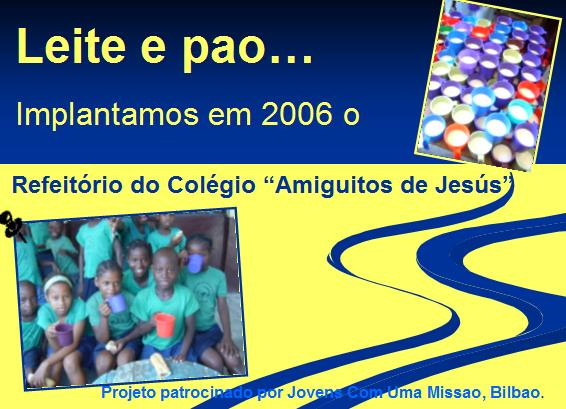 ¡FALTA PAO! Janeiro 2008 Nos últimos meses só temos podido dar leite em pó às crianças do Colégio Amiguinhos de Jesus em Guiné Equatorial porque continua aumentando o preço, estamos misturando leite em pó com leite condensado, que é um pouco mais barato, por isso não podemos dar-lhes pão. Temos