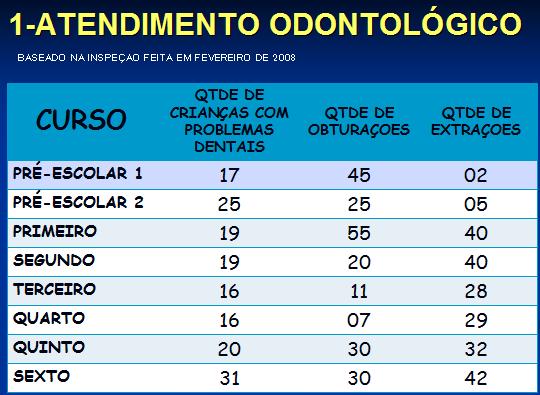 A dentista cubana que atende no ambulatório do colégio já está examinando as crianças e temos as estatísticas em quanto a necessidade dos medicamentos. Esperamos