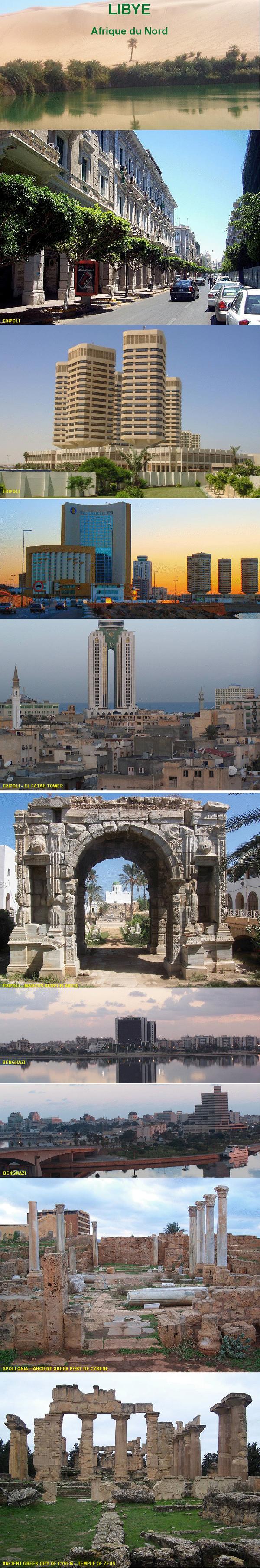 Geral Logo depois de ter assumido o governo, após o golpe militar de 1969, o Cel. Muamar Kadafi pôs em prática seu próprio sistema político, chamado de “Terceira Teoria Universal”. O sistema é uma combinação de socialismo e islamismo, derivada em partes de prática tribais. A intenção alegada é a de que o povo da Líbia possa implantar uma “democracia direta própria”. Kadafi sempre se viu como um revolucionário e um líder de visão. Ele usou os recursos advindos do petróleo durante os anos 70 e 80 para promover sua ideologia fora da Líbia, apoiando subversivos e terroristas no exterior objetivando o fim do marxismo e do capitalismo. Além disso, no começo de 1973 ele se envolveu em operações militares no norte do Chade para ganhar acesso a minérios e também como plataforma para ter influência sobre os políticos daquele país, mas em 1987 as forças do Chade retomaram o controle sobre a Faixa de Aozou. Sanções das Nações Unidas em 1990 isolaram Kadafi politicamente, logo após o atentado contra o vôo Pan AM 103, que explodiu sobre a cidade de Lockerbie, na Escócia. Mais tarde, quando Kadafi descobriu que não poderia escapar facilmente das sanções e que as nações árabes não estavam tão interessadas em suas iniciativas políticas de integração regional árabe, ele passou a dedicar-se a tentar ganhar influência sobre a África, onde ele alcançou algum sucesso. O apoio líbio ao terrorismo parece ter diminuído depois das sanções impostas em 1992 pela ONU. Durante os anos 90, Kadafi também começou a reconstruir sua relação com a Europa. As sanções da ONU foram suspensas em 1999 e finalmente extintas em setembro de 2003, quando a Líbia resolveu o caso de Lockerbie. Em dezembro de 2003, a Líbia anunciou que concordara em revelar e encerrar seu programa de desenvolvimento de armas de destruição em massa. Povos A população é uma questão confusa, pois os trabalhadores estrangeiros compõem algo em torno de 3 a 35% do total de habitantes da Líbia. Todos os dados são estimados. Nativos: 75% Árabes: 63,1%, incluindo 750.000 beduínos (em 5 grupos); Berbere: 9,4%, cerca da metade são arabizados (8 grupos); Outros: 2,5%. Negros africanos, 100.000; Teda, 20.000; Estrangeiros: 25%. Muitos trabalhadores de terras vizinhas. Predominantemente egípcios, sudaneses, norte-africanos e chadianos. Economia Transformada pela descoberta do petróleo em 1959. A riqueza do petróleo tem financiado o movimento revolucionário e promovido o islamismo em muitas nações, enquanto contabiliza quase todas as exportações. O governo ditatorial inconstante de Kadafi tornou o desenvolvimento desigual. As sanções lideradas pelos EUA são obstáculos à economia. Os subsídios generalizados e as ajudas gratuitas limitam a oposição política, mas o desemprego entre as gerações mais novas é surpreendentemente alto. Quase 75% de toda comida é importada. As mercadorias são caras e a maioria da população não pode comprar. Política Governada pela Itália de 1911 – 1943. Completa independência em 1951, como uma monarquia. O golpe militar de 1969 levou a uma república revolucionária sob a liderança de Muammar Kadafi. Enquanto três grupos da polícia secreta espionam a população e a si mesmos, informações de conflitos civis e insurreições ocasionalmente vazam. Execuções de supostos espiões no final dos anos 90 revelam a insegurança do governo. Os anos de imposições de sanções pela ONU, devido ao envolvimento da Líbia com o terrorismo, terminaram em 2000. Kadafi parece ter abandonado o nacionalismo árabe pela polêmica pan-afriacana. Religião O islamismo sunita é a religião do Estado, mas as influências secularistas são fortes. O governo vê o islamismo como uma ideologia, e o apoio goteja pelo país como uma ameaça. Nenhuma forma de testemunho cristão para os cidadãos líbios é permitida, e congregações de estrangeiros são atentamente monitoradas. Existe um limite imposto pelo Estão de uma igreja por denominação em cada cidade. Todos os dados abaixo são aproximados. Ocupa o 12º lugar no índice mundial de perseguição à Igreja. Extras