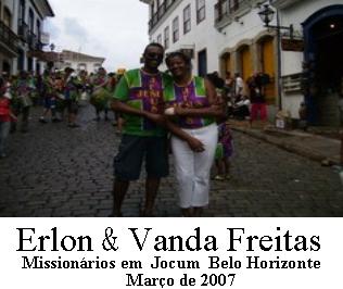. . Erlon & Vanda FreitasMissionários em Jocum Belo Horizonte - Março de 2007 Olá amigos, Queremos agradecer por suas orações e