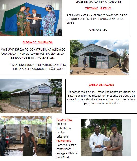 Meu querido pastor Santa e abencoada igreja Queridos e amados irmaos companheiros da obra missionaria. E com alegria que estamos enviando mais um reporter misisionario e desta vez com mais lutas e maiores vitorias. 1-SITUACAO EM MOCAMBIQUE
