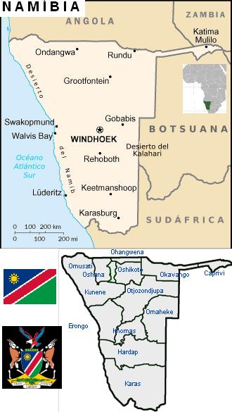 A Namíbia está subdividida em 13 regiões: NAMÍBIA