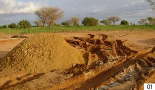 numero 1:O local da construcao eh fora da cidade e por isso um local onde nao ha outras construcoes ao redor ainda. Tivemos muita dificuldade para que os caminhoes de areia, agua, etc pudessem chegar ate la. O solo eh muito fofo (areia) e dificultou muito o trabalho no inicio. Foto