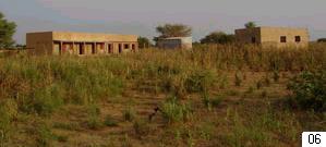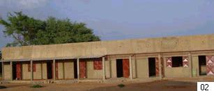 numero 5:Uma foto tirada das 3 classes. Cada classe tem 2 portas e 4 janelas. Na frente colocamos uma cobertura (varanda). Na planta de toda a escola, ha tres blocos de 3 classes cada um. A cada ano estaremos aumentando as construcoes. Foto