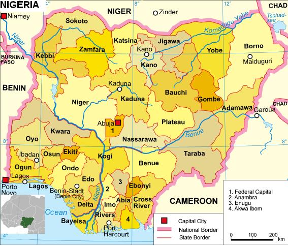 A Nigéria é um Estado federal constituído por 36 estados.