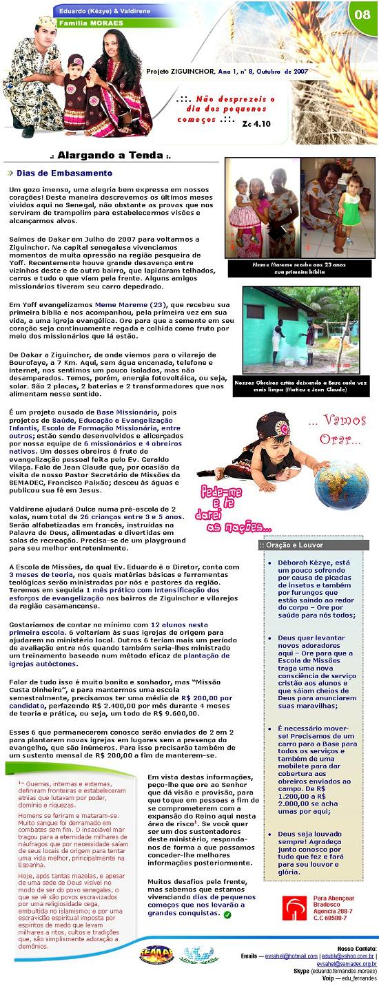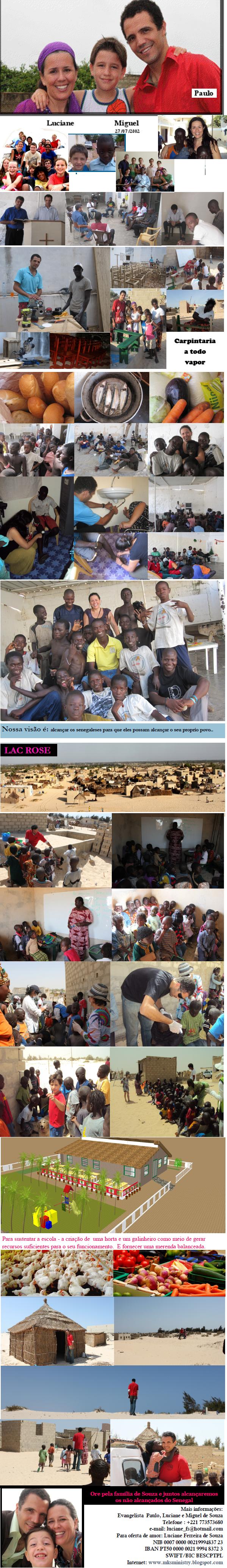 gelicos, oramos a Deus para que toda a semente lançada germine e que o Espirito Santo fale no coração deles. Estamos trabalhando na aldeia 5 dias por semana. Terça e Quinta vamos e voltamos pois o Miguel estuda numa escola para filhos de missionarios em Dakar. Os fim de semanas estamos na aldeia. Seguimos em frente com o Projecto Efraim, Projecto de agricultura e Projecto Basico de saude. Agradecemos