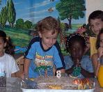 Ferias, das 47 crianças inscritas para participar tivemos entre 15 a 40 crianças todos os dias. Infelizmente nossos alunos estavam se preparando para a Conferencia—um dia especial para os pais mul- çumanos que é quando seus filhos recitam os versos do Alcorão publicamente, então a maior parte das crianças estavam ensaian- do para isto. A ansiedade de cada dia era grande para saber quan- tas crianças apareceriam para ouvir a palavra de Deus. O tema foi « Aventuras de Paulo 3D ». -