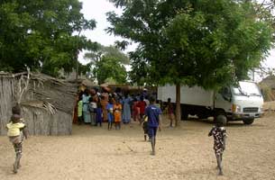 com o carro móvel com equipe de saúde para aldeia de Godel.Assistência