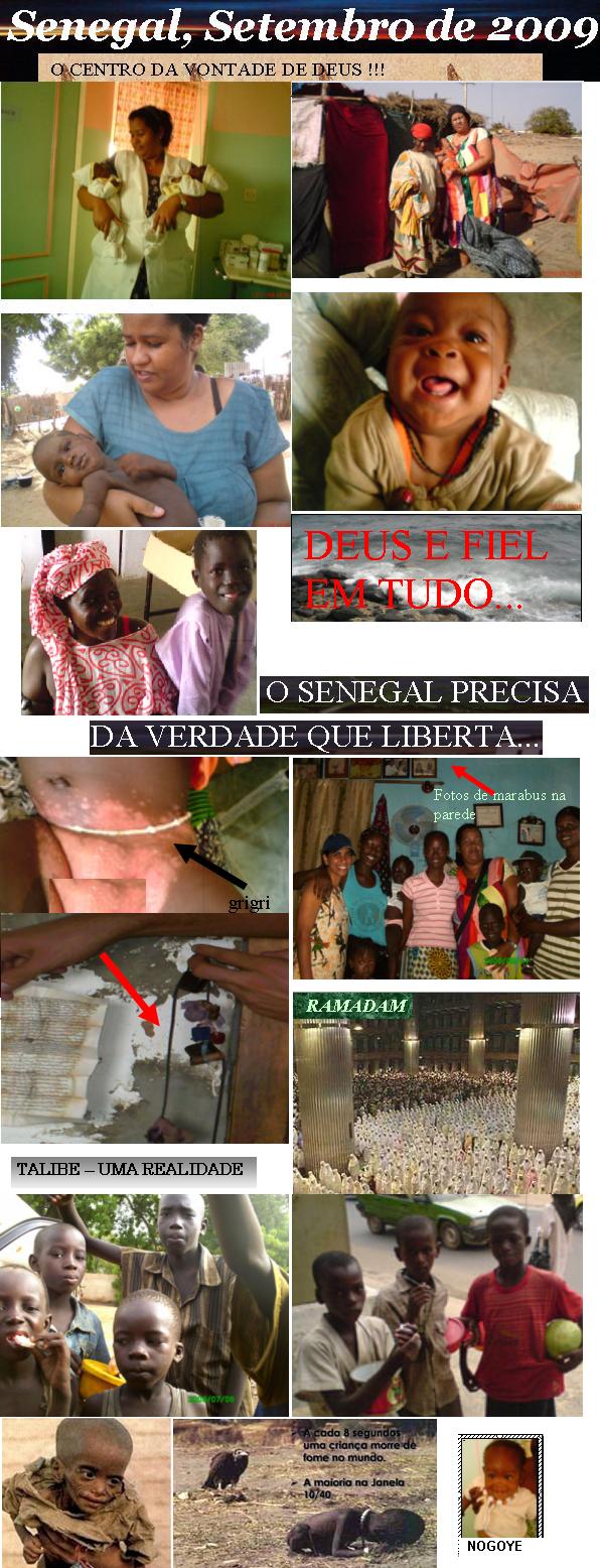 Por Fatou e as crianças, nas dificuldades que o futuro lhes aguarda. Pela Pauline que tem problemas sérios de válvula do coração - ela foi operada ano passado, mas parece que volta a ter problemas de novo. Pela igreja em Dakar e Ziguinchor para que continuem o testemunho da fé cristã num contexto de maioria muçulmana, (95%).