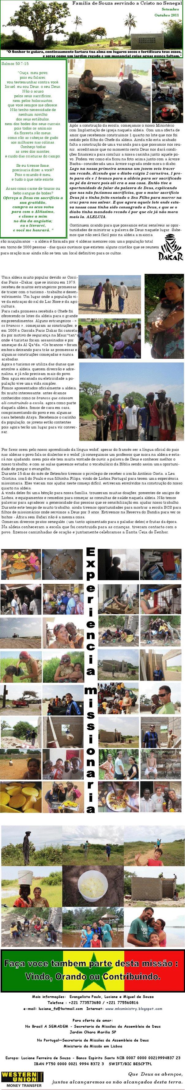 Missionários_ Paulo, Luciane e Miguel Telefone : +221 773573680 +221 775560816 MARIA HELENA COSTA FERRREIRA