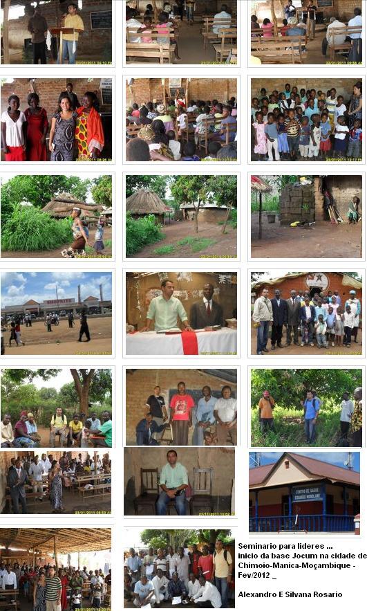 A JOCUM (Jovens Com Uma Missão ) é um movimento internacional de jovens cristãos de orientações denominacionais diversas que servem de forma dinâmica,diferentes áreas da Sociedade,em busca de integração social e geração de valores sociais e humanos. Fundada pelo casal Lorem e Darlene Cunningham há mais de 50 anos,a JOCUM reúne uma mistura de pessoas de mais de 175 países tendo mais de 16.000 obreiros de todos os continentes, e locais de operação em mais de 177 nações. Nosso chamado Alexandro Rosário, 36 anos e Silvana K.B. Rosário,33 anos, brasileiros ,casados desde Dezembro de 2005 e pais de Gabriel Munashe nascido aos 12 de Outubro de 2011 em Moçambique. No ano de 2006 fomos direcionados por Deus para servir à nação moçambicana como missionários de tempo integral. Fizemos contato com um casal de missionários que eram representantes da JOCUM (Jovens Com Uma Missão)na cidade de Chimoio ,província de Manica em Moçambique. Algumas semanas antes de viajarmos para Moçambique o casal de missionários Orlando e Jenny precisaram retornar ao Brasil e enviaram nossos contatos para a base de JOCUM-DONDO na província de Sofala.(o sonho de trabalhar em Chimoio fora adiado). Durante esse tempo em que vivemos em Dondo, aprendemos muito sobre a cultura as línguas e os costumes do país,bem como as principais necessidades do povo e da Igreja moçambicana. Servimos à base do Dondo desde Março de 2007 nas seguintes áreas: Alexandro: Ministério de Treinamento e Implantação de igrejas; Diretor e obreiro da Escola de Treinamento e Discipulado (ETED), seminários para líderes da igreja local; pregação ,discipulado e estudo bíblico. Silvana : Ministério de Socorro e Misericórdia; coordenadora da Escola de Saúde Primária, Tec enfermagem voluntária no hospital, controle de peso ,aconselhamento,e orientação de saúde aos pais e as crianças da escolinha comunitária “casa da gente”; programa de ensino de artesanato para pessoas da comunidade. Após permitir que servíssemos desde 2007 em JOCUM Dondo, agora o Senhor tem nos chamado para retornarmos ao chamado inicial na cidade de Chimoio. Agora já estamos desenvolvendo os primeiros trabalhos de treinamento em Chimoio, JOCUM CHIMOIO já é uma realidade. Venha fazer parte desta onda. História do Projeto O OBJETIVO É CONTRUIR UM CENTRO DE TREINAMENTO PARA : Receber obreiros, professores e alunos para realização da Escola de Treinamento e Discipulado (ETED). Receber os obreiros das igrejas para a realização de Seminários para Líderes da Igreja Local (SELIL). Ministrar palestras na área de saúde para pessoas da comunidade , agentes de saúde e ativistas ,igrejas etc.... Iniciar o projeto de um Centro de Apoio para crianças órfãs e vulneráveis. Reuniões de oração , cultos e reuniões ministeriais com os obreiros. =