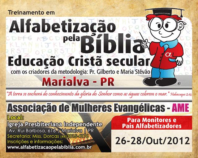 Todos são bem-vindos para o treinamento. Telefone e orientações no cartaz anexo. Data: de 26 a 28 de outubro de 2012. Local: Igreja Presbiteriana Independente. Av. Rui Barbosa, 616. Marialva-PR. Inscrição com a missionária Dorcas. Telefone: 44-3015-4176 Vosso em Jesus Pastor Gilberto Stevão