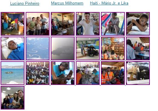 trabalho que Deus tem nos mostrado, e' muito grande para que possamos pensar em realizá-lo sozinhos, entao...precisamos de voce! Por favor nos ajude, ore por nós, trabalhe conosco, invista em nós, vamos fazer essa obra todos juntos...PARA QUE ELE SEJA GLORIFICADO. www.apec.com.br FOTO DA FAMILIA DA DIRETORA NACIONAL DO HAITI - ADLINE CAMEUS E FAMILIA. 05/04/2010 O Diretor Regional do Haiti enviou esse e-mail com algumas fotos dos obreiros do Haiti. Veja em anexo. Vamos trabalhar o pais do Haiti no Programa Missionário da EBF-2010. Izidora Olá, Aqui estão algumas fotos dos obreiros e voluntários no Haiti. Há também uma foto da Diretora Nacional e sua família. O nome dela é Adline Cameus. O marido dela é Lúmenes e suas filhas são Abi e Annie. Vou enviar outras fotos separadamente. MOTIVOS DE ORAÇÃO Louve a Deus que todos os obreiros e os voluntários estão seguros. Ore por eles, pois a temporada de furacões começa em maio e todos estão em tendas que não dará nenhuma proteção contra chuva e vento. Ore pelos "Livro das Maravilhas e os Folhetos que foram traduzidos e estão sendo impressos em crioulo agora. Se Deus quiser, eles serão enviados ao Haiti em mais ou menos 2 semanas. Ore para que muitas, muitas crianças venham a Jesus através desses livros. Ore pelo Curso de Formação de Professores. Que possa haver um curso em uma das tendas da cidades. Ore que estes professores alcancem muitas crianças para Cristo. Este é o endereço de e_mail Adline ... Que nenhum pequenino se perca!! ( Izidora ) www.renatovargens.rg3.net 02/08/2010 Renato Vargens Acabei