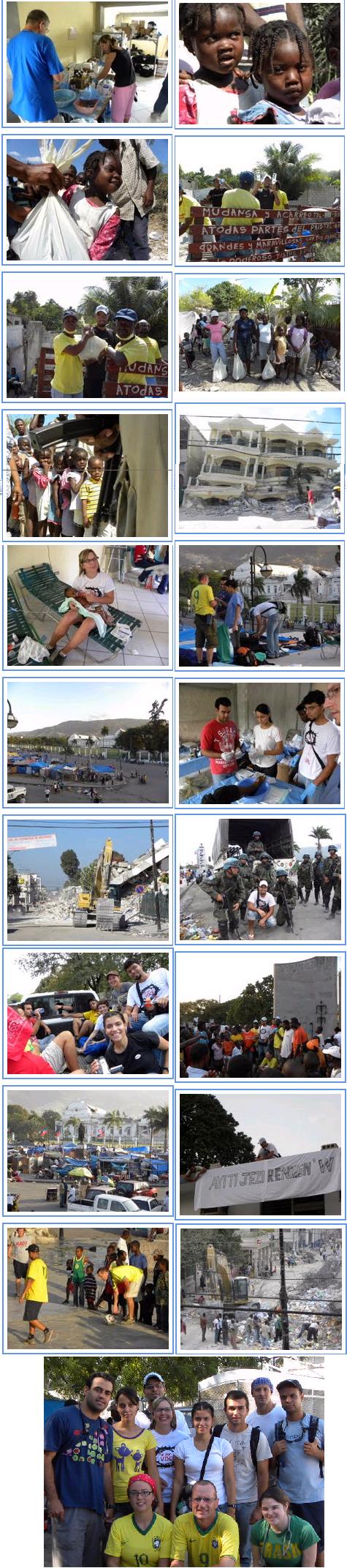 Nós encontramos alguns de nossos pastores logo à beira da cidade deGonvaives num lugar calmo, enquanto tranferíamos sacos de arroz e feijão, junto com outros suprimentos e algum dinheiro. Então com o caminhão já descarregado, fomos a cidade de Gonaives e nos reunimos com alguns de nossos pastores. Temos 19 pastores na região de Gonaives. Quinze deles ou perderam as suas casas e todos os seus pertences ou sofreram dano significativo. Muitos dos pastores chegaram até nós usando a única roupa que lhes pertence. Um chegou descalço. Nós nos reunimos de baixo da sombra de uma árvore - naquele momento aquele lugar se tornou o nosso santuário e nosso local deculto. O superintendente daquela região, Pastor Delamy, nos dirigiu num hino,Tú és Fiel, Senhor, e então nos conduziu ao recitarmos juntos o Salmo 23. Eu então trouxe uma breve devocional do livro de Filipenses 4:4 a 9 e orei pelos pastores que estavam presentes. Então fomos para o que tinha sido a nossa igreja em Mapuo (bairro de Gonaives). No Sábado, dia 18 de Setembro, começo a chover ao aproximar o furacão Jeanne. O estimativa é que 40 a 50 centimetros de chuva acumulados cairam num espaço de 18 horas. Haiti é o país mais danificado ecológicamente que eu conheço. Noventa e nove porcento do país foi devastada de suas florestas e há erosão terrível devido a falta de floresta e mata. Aquela noite enquanto as águas começavam a inundar a cidade alguns dos membros da igreja (são 500 membros) se reuniram na igreja para aguardar a passagem da chuva e inundação. Cerca das 9 horas da noite uma parede de água e lama e entulho ---estimado a 3 a 5 metros de altura ---passou pela cidade. Tragicamente , esta parede passou pela nosso igreja e em questões de segundos a encheu de lama e entulho. Anexado está uma foto de mim em pé onde era a entrada do templo. De baixo do entulho se vê partes dos corpos de irmãos e irmãs que não puderam escapar. O pastor nos disse que perdeu 125 membros na enchente. Nossa última parada foi em nossa escola, também localizada no bairro de Mapou, que tinha cerca de 300 alunos matriculados. O terceiro e último arquivo anexado é uma foto de mim em pé no que era o centro do prédio escolar. Como vocês podem ver, o prédio foi completamente levado, junto como muitos equipamentos e pertences do pátio da escola. Amanhã deixamos o Haite e retornamos para Los Angeles. Um relatório detalhado dos danos e projetos de ajuda está sendo preparado a logo estarão prontos e disponíveis. Nossa primeira prioridade será o cuidado de nossos pastores e suas famílias, para que eles possam melhor cuidar de suas congregações. O nosso diretor de missões no Haiti, Gregg Ennis, estima que cerca de US$ 100.000,00 será necessário para recontruir ou reparar as suas casas e repor os seus pertences. Doações poderão ser enviados para o Programa de Apadrinhamento, Childcare Ministeries, ou para o Bishops Famine and Relief Fund (Fundo Assistencial para Fome e Ajuda, coordenado pela Junta de Bispos), o qual tem a sua sede no Centro de Ministério Mundiais em Indianápolis. Tenham liberdade para distribuir este boletim. É difícil descrever tamanha devastação As imagens estão gravadas no meu coração. Quando me reuni com os nossos colegas pastores, eu lhes assegurei que os seus irmãos e suas irmãs metodistas livres estariam orando por eles. Você se compromete a orar? Você pode contribuir financeiramente? Um amigo, Bispo Roger Haskins Jr. ( é minha gente!!! a chapa ta quente :(( vamos repassar esse email, vamos ajuda-los :) tenha uma ótima tarde! Dé _10/2004 = = = www.agenciademissoes.com.br Hudson F. Silva _ 02/05/2008 Olá a paz do Senhor! Me chamos Hudson Faria Silva, acessei seu site e gosteir muito da preocupação com o evangelho de cristo e com os missionarios que estão no campo. Gostaria me colocar a disposição no sentido de propagar essa obra missionaria e levar a voces noticias do Haiti e de um missionario de que se encontra em Sant Marc - Haiti, trabalhando com juvens adolescentes e encinando a palavra de Deus. Tivemos a oportunidade de estar no Haiti por seis meses emmisssão de Paz com as tropas brasileiras e louvado seja o nome do Senhor Jesus por ver hoje o quadro daquela nação ser mudado pra melhor, há muito oque fazer ainda e sei que Deus tem cuidado disso mas é precisso nos despreender e agir para que a nossa fé não viva sem as obrasde. Temos um site sobre missões. onde falamos de tudo um poucoe nos colocamos a disposição para uma parceria na divulgação do evangelio. aguardo seu contato para oque for util. - - - aGUARDAMOS com alegria as informações sobre o Haiti ... as quais serão inseridas no http://www.uniaonet.com/amcentral.htm e compartilhadas com todos os de nossa comunhão . Louvamos a Deus por doravante seguirmos juntos , e no dia a dia vamos nos conhecendo e trabalhando em união . Yrorrito = = = www.agenciademissoes.com.br 14 de novembro de 2008 - Haiti Para Cristo - Venho por meu desse email solicitar a vsa senhoria tetalhe desse Projeto para o Haiti. Tal solicitação se dar por motivo de estarmos desde 2005 monitorando o Haiti no que se refere as necessidades basicas para o bem comum e nossa grande dificuldade é de pessoas com o coração de Deus incondicional a estarem se doando e contribuindo para essa realização. Estivemos no Haiti por 6 mese no segundo semestre de 2005, em Missão de Paz (UN) pelas nações Unidas e conciliamos o chamado de Cristo Jesus com essa missão onde com certeza tivemos a oportunidade de realizar a ajuda humanitaria,extreitar laços com pastores haitianos que até hoje estamos sempre contactando. No periodo que estivemos lá criamos em nossa base um "Nucleo Evangélico" que hoje é oficializado na base brasileira e temos como responsabiliodade um orfanato com 40 crianças. Pela mesericordia do nosso Deus dois missionarios obteve informações do que e onde era o Haiti e assim tuivemos condições de apoia-