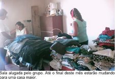 em Jardim SolitudeO programa em Jardim Solitude está entrando numa fase de adaptação. As pessoas que formam a comissão tem se encontrado quase todos os dias. Elas alugaram uma pequena sala onde recebem treinamentos e comercializam seus produtos. Três participantes deste grupo, foram conosco para uma outra comunidade, chamada Jardim Cristal, para falar do programa e motivar as pessoas de lá. ( Foto : Sala alugada pelo grupo. ) Até o final deste mês estarão mudando para uma casa maior. Grupo