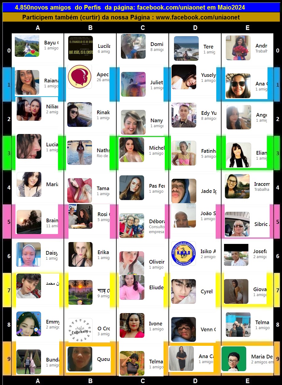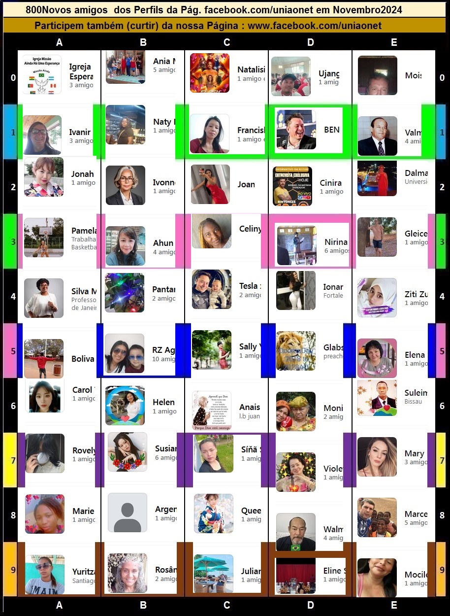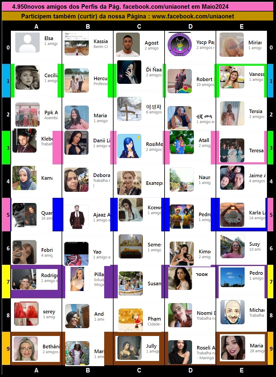 A0 Fátima Paiva A1 DiáconoEdnaldo Lino A2 Andeloy Angofoot A3 Carla Maria A4 Eliane Rodrigues A5 Min Rocha Viva A6 Leila Martins Rodrigues A7 Sabrina Santos A8 Isabel Adriano A9 Dri Sampaio B0 Elisa Mello B1 Valéria Joaquim B2 Marcynho Vidal B3 Geisy Ferreira B4 Armando Qtã B5 Temi Dayo B6 Puji Lestari B7 Eduarda Ingrid Da Silvar Brito Ingrid B8 Verônica Cortez B9 Marjorie Anahi Seminario Crovetto C0 Larry Johnson C1 Luísa Dos Santos Gonçalves Leizinha C2 Catalina Munteanu C3 Tania González C4 Salo Arly Arly C5 Deolinda DC C6 Clarice Brickmann C7 Ao Hanh Dung C8 Silvia Soares C9 Isabel Antonia Fernandes D0 Antoniella Stella D1 Arman Bhocahh Valentino D2 Casade Davi D3 Irineia Novais Dos Santos D4 África Africanos D5 Aline Victorine D6 Xaiane Araujo 6 - D7 Albino Ferreira - Ana D8 Jecyl GEn Pinaandel Ayuman D9 Jesuina Preciosa Ambrósio E0 Josi Salgado E1 Gere AndersonTrust E2 Ana Maria Zalazar E3 Carmem Rodrigues 9 - E4 Andreza Rodrigues Dos Santos E5 ? Ryoko Kudo E6 Ester de Benitez E7 ?Ihsan Al-Naili E8 Nathally Araújo E9 Md Roni amg2023maio3800 ![]() A0 Evana Cunha Ferreira A1 Regiane Fetter Santos A2 Lurdecleni Mechaque A3 Areeya Chaiwong A4 Angelica López A5 Song Thanh A6 Silva Cidinha A7 Sylvinha Boaventura A8 Cintia Guedes Coutinho Feitosa A9 Ana Melo B0 Nilma Barbosa B1 Muhammad Ashraf B2 Leidy Domingas Angolano B3 Dorcas Pentecoste B4 Zhen Xi B5 Levi Rogrigues B6 Adep Kids B7 Emanuele Moura Moura Castro B8 Lucimara Rosa B9 Leninha Fernanda C0 Reginalva Ferreira Solito C1 Wizzy Cbn C2 Prince Mark C3 Daniella Cristina C4 Marcia PT C5 Rita Belorio C6 Marcia Almeida C7 Cristiana Domingos Cris C8 Samara Monique C9 Matusalém Perera D0 Natalia Kyle D1 Marisa Priscila Marineyde D2 Davi Moreira Duarte D3 Nurry Tasya D4 Delgado Yamela D5 Uugantsetseg Boldbaatar D6 Joana Francisco Chivurre D7 Rahmawatie Mha Rahma D8 Julia Rodriguez D9 Heloisa Silva 9 - E0 ? Ryoko Kudo E1 Goresan Sang Pengelana E2 Rosa Cleusa Sandes E3 Helbert Imbuzeiro 6- E4 ? Myunghee Kang E5 Duce Mendes E6 Victor Antonio Francisco Molene E7 Cef Dominica E8 Lucineide Tiago E9 ? Ihsan Al-Naili amg2023maio3850