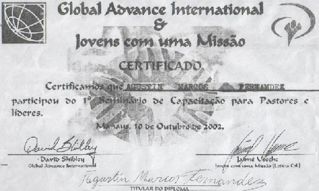 Amados em Cristo:A Paz do Senhor Jesus. Estou na base da Jocum Manaus onde esta o escritorio operacional do Projeto Nordeste India e fiz uma boa viagem. Conheca o trabalho que desenvolvemos aqui acessando o site http://www.manaus.jocum.org.br/ Abracos fraternos, Miss. Anivandes = = = Queridos irmãos: A Paz do Senhor Jesus. Continuo na base da Missão JOCUM em Manaus, e cumprindo uma regra do Projeto Índia Nordeste que exige aos missionários passar um período de no mínimo 6 meses no projeto antes de serem enviados ao campo transcultural. Como atuei em África por 4 anos e vivi muitas experiências transculturais, a liderança esta flexível em me enviar a Índia antes de cumprir o tempo exigido, porém ainda não tenho o valor necessário para compra da passagem aérea e peço aos amados que estejam orando para que O Senhor entre com Sua divina provisão. O objetivo do Projeto Índia Nordeste é: · Alcançar o nordeste da Índia para Cristo; · Enviar missionários para o nordeste na Ìndia; · Fazer um elo entre missionários no campo e a igreja no Brasil; · Levantar intercessores e mantenedores para o projeto e missionários; · Divulgar as necessidades de missionários no campo. Estamos nesse tempo visitando igrejas, mobilizando e desafiando-as a unirem-se conosco neste propósito. Quanto a data da viagem para Índia... Estamos orando para que não seja necessário eu viajar sozinho, afim de unir a equipe que lá esta. Uma opção que temos colocado diante do Senhor em relação a data e esperar a chegada do líder da base da Missão JOCUM em Guwahati Assam ao Brasil ( no dia 6 de novembro) , ele retornará a Índia com a família dia 16 de janeiro, assim sairíamos juntos a caminho da terra prometida, como ele fez este trajeto por várias vezes evitaríamos os contratempos burocráticos que a viagem nos proporciona. Quer o Senhor nos ilumine em todas as nossas decisões e nos preserve no centro de Sua vontade que é boa, perfeita e agradável. No Amor de Cristo, Miss. Anivandes D. de Oliveira = = = A Paz do Senhor Jesus. Tenho passado alguns problemas de ordem financeira devido a ausencia de parceiros ministeriais; No decorrer do tempo algumas igrejas que fizeram compromisso conosco entraram em construcao ou reforma, irmaos tiveram dificuldades financeiras no comercio ou causadas por enfermidades, e assim ficaram impossibilitados de continuar nos dando apoio financeiro. Este mes estarei dedicando a visitar igrejas, participar de cultos de missoes e conscientizacao missionaria, afim de novamente levantar uma equipe de apoio formada por intercessores e mantenedores, afinal sozinho nao poderei dedicar integralmente a Obra do Senhor por isso precisarei de pessoas que estejam segurando as cordas para que eu possa estar na linha de frente em Missoes e cumprir os propositos do Senhor atraves do ministerio que Ele nos confiou. No dia 28 de junho/2007 regressarei a Manaus - Am onde continuarei trabalhando com criancas em risco, especialmente com meninos de rua, inclusive (apesar de ser solteiro) estarei me empenhando em adotar uma dessas criancas que tenho acompanhado e que atualmente esta nas ruas, usuario de drogas, mas sei que O Senhor transformara a vida desse pequenino e quero fazer parte integrante desse milagre. ( Peco que estejem orando por ele e pelo processo de adocao). Peco oracao tambem para que O Senhor me mostre por onde anda aquela que sera minha ajudadora pois ja faz anos que tenho orado nesse sentido e ainda nao alcancei a bencao tao esperada, e essa e a principal razao que ainda nao voltei ao campo transcultural. Aqueles que queiram me ajudar em divulgacao poderao entrar em contato via fone ou email. No Amor de Cristo, Anivandes D. de Oliveira _Fone: 0xx33 37216050 - - - 26/07/2007 _ ``Ensina a criança no caminho em