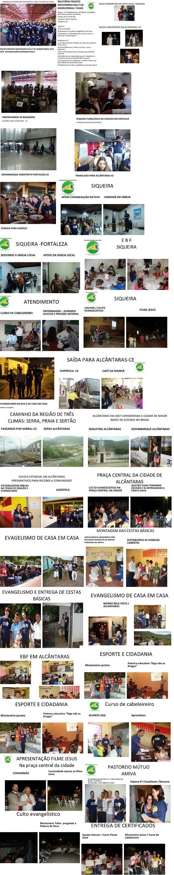 – 25 integrantes de sete igrejas evangélicas de Brasília parceiras da AMIVA; Cidades alvos da Missão: Fortaleza –Bairro Siqueira Alcântaras-CE Siqueira