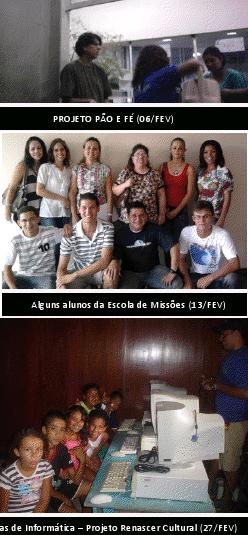Goiânia, 05 de Dezembro de 2009 A MISSÃO TOCANDO AS NAÇÕES (MTN) visando melhor assistir as atividades sociais, culturais, teológicas e missionárias se mudou no dia 29 de Novembro/09 para um NOVO ENDEREÇO - Rua C-212, Qd. 523, Lt. 24, n. 882, Jd. América, Goiânia, Go, CEP.: 74270-250. Sendo assim, ampliaremos nossas frentes de trabalho para o ano de 2010, acesse nosso site: www.mtn.org.br A MISSÃO TOCANDO AS NAÇÕES (MTN) ainda este mês de Dezembro/09 estará ADQUIRINDO UMA KOMBI SEMI-NOVA que será utilizada no amparo assistencial dos projetos que são desenvolvidos e possibilitará a extensão de novos projetos – quem quiser ajudar favor depositar qualquer quantia na conta corrente da MTN: Banco do Brasil | Agência: 1841-4 | Conta Corrente: 19184-1. Melhores informações: www.mtn.org.br ou se preferir (62) 3941-0884. A MISSÃO TOCANDO AS NAÇÕES (MTN) lançará em 2010 o SETAL – SEMINÁRIO EVANGÉLICO DE TEOLOGIA DA AMÉRICA LATINA. Um curso teológico que funcionará no período noturno ou sabatino, defenderá uma teologia funcional para as diversas igrejas evangélicas valorizando as diferenças doutrinas evangelicais, disponibilizará internet sem fio a para os alunos, contará com salas menores para favorecer o processo pedagógico, oferecerá tutor on-line e muito mais, com mensalidade de apenas R$ 145,00 reais. Melhores informações acessem: www.setal.org.br Fortalecido pela cruz de Cristo, = = = Ola, amigos e parceiros da MTN. Conforme previsto a MISSÃO TOCANDO AS NAÇÕES adquiriu HOJE (15 de dezembro/09) uma KOMBI seminova (ano: 2000/2000 - cor: branca - motor: 1.6 - combustível: gasolina - valor: R$ 15.000,00), na Saga Buriti (Goiânia-Go). Para tanto, demos 10.000,00 (dez mil) à vista, e um cheque pré-datado no valor de R$ 5.000,00 (cinco mil) reais para o dia 21 de dezembro - data que receberemos da concessionária o referido automóvel. Então, precisamos "cobrir" o cheque de R$ 5.000,00 no dia 21/dez/2009 (segunda) - quem quiser ajudar pode depositar qualquer quantia .. . Segue em anexo algumas fotos da NOSSA "KOMBINHA", também a cópia (digitalizada) dos cheques e do recibo de compra. = = = 10/01/2010CARTA RELATÓRIO DA MISSÃO TOCANDO AS NAÇÕES A MISSÃO TOCANDO AS NAÇÕES (MTN) no final de dezembro do ano passado, conforme previsto, comprou a Kombi (ano 2000/2000) no valor de R$ 15.000,00 (quinze mil) reais. Agradecemos a todos que forma direta ou indireta contribuíram para que pudéssemos adquirir este veículo que será utilizado para expandir e melhor assistir os projetos sociais, culturais, missionários e evangelísticos da MTN. A MISSÃO TOCANDO AS NAÇÕES (MTN) nas vésperas das comemorações de Natal no ano de 2009, distribuiu vários brinquedos, enxovais e cestas básicas para a comunidade carente do St. Buriti Sereno (Aparecida de Goiânia – Go). Todos os sábados realizamos atividades com as famílias em estado de vulnerabilidade social do referido setor, com Bazar Comunitária, Biblioteca Comunitária e muito mais. A MISSÃO TOCANDO AS NAÇÕES (MTN) agradece a todos os mantenedores que nos ajudaram em 2009 e ratificamos que no ano de 2010 continuaremos trabalhando para que o Evangelho seja pregado de forma Integral. Para tanto reafirmamos nosso compromisso de fortalecer as igrejas evangélicas, apoiar missionários no campo, pregar a Palavra, interagir com as diversas formas de cultura, implementar estruturas educacionais e expandir o Reino de Deus. Fortalecido pela cruz de Cristo, Pr. Vinicius O. S. Guimarães Presidente da Missão Tocando as Nações = = CARTA RELATÓRIO DA MISSÃO TOCANDO AS NAÇÕES Goiânia, 06 de Fevereiro de 2010 A MISSÃO TOCANDO AS NAÇÕES (MTN) retornou no mês de Janeiro as atividades do PROJETO RENASCER CULTURAL – foto ao lado tirada em janeiro/10 – neste ano o projeto estará oferecendo para a comunidade carente do St. Buriti Sereno aulas de computação, biblioteca comunitária, bazar comunitário, atividades com as crianças, lanches e muito mais. Quem quiser colaborar basta entrar em contato conosco. A MISSÃO TOCANDO AS NAÇÕES (MTN) em parceria com diversos amigos de inúmeras igrejas evangélicas iniciou neste mês de Janeiro o SETAL (SEMINÁRIO EVANGÉLICO DE TEOLOGIA DA AMÉRICA LATINA) – foto ao lado tirada em janeiro/10 – oferecendo o curso de bacharel em teologia (período noturno ou sabatino). Para melhores informações acesse nosso site: www.setal.org.br AMISSÃO TOCANDO AS NAÇÕES (MTN) expandiu as ações da ESCOLA DE MÚSICA (renda integralizada aos projetos missionários, sociais e humanitários da MTN) e está oferecendo de segunda a sábado aulas de violão, canto, teclado, bateria, guitarra e contra-baixo – foto ao lado tirada em janeiro/10. As aulas acontecem no setor Jd. América (cidade de Goiânia – Goiás). Fortalecido pela cruz de Cristo, = = = 11/02/2010 Ola, amigos e parceiros da MTN. Segue em anexo algumas fotos do PROJETO PÃO E FÉ [Distribuição de pão, café e leite nas portas de hospitais] da MISSÃO TOCANDO AS NAÇÕES (MTN) realizado no último sábado. Atenciosamente, Missão Tocando as Nações = = = Goiânia, 06 de Março de 2010 A MISSÃO TOCANDO AS NAÇÕES (MTN) reativou no mês de fevereiro o PROJETO PÃO E FÉ – O projeto teve início em 2004 com a distribuição de alimentos (pão, leite e café), mensagens bíblicas através de folhetos e músicas. o principal objetivo é demonstrar o amor de Deus pelos necessitados e confortar pacientes e familiares, prestando uma ajuda PROJETO PÃO E FÉ (06/FEV) assistencial e espiritual. A MISSÃO TOCANDO AS NAÇÕES (MTN) iniciou em fevereiro o ano letivo da ESCOLA DE MISSÕES. Neste ano de 2010 teremos como professores diversos missionários de inúmeras denominações evangélicas – acesse nosso site e verifique a lista de docentes. O curso visa fortalecer o chamado missionário e fundamentar a visão missionária em líderes das igrejas locais. As aulas acontecem em Goiânia, somente ao