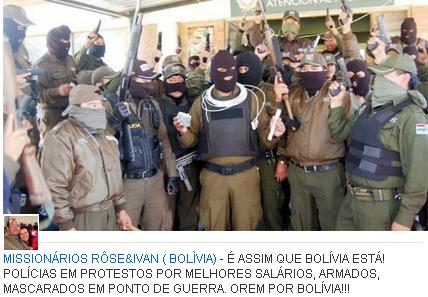 = = 21/02/2012 _ Victor Hugo Ramallo _ Olá irmãos e irmãs, depois de alguns dias sem poder acessar o facebook pois estava em um local onde o sinal não era estável o suficiente. Nos dias de carnaval fui designado a apoiar os jovens de Oruro em seu acampamento em Obrajes, um local perto da uma estação de águas termais no meio das montanhas . Foi muito bom e proveitoso, apesar do frio que me levou a usar 3 pares de meia, duas calças e muitas blusas. O tema do acampamento era "A volta do SENHOR" e eu conversei sobre os jovens estarem prontos para esse magnífico evento, que sinceramente creio que está próximo e que gostaria de ver. Os jovens se animaram muito, tivemos muitas reconsagrações, 23 decisões por CRISTO e um batismo que realizamos no rio (gelaaaaado! heheheheh). Foi muito bom. Agora estou na cidade Oruro gozando de um dia de descanso em um pequeno hotel da cidade. Assim que for possível subirei mais fotos para que vocês possam ver. www.ieadma.org _ IGLESIA ASAMBLEA DE DIOS MISION PARA LAS AMERICAS Av. Petrolera Km. 10 barrio minero san Juan casilla 1753 Cochabamba Bolivia Telf. 0021.591.4.4472618 ou 0021.591.76420779 PASTOR MISIONARIO ADAO TAVARES MEU AMADO PASTOR E IGREJA PAZ DO SENHOR JESUS Venho atraves desta apresentar-me sou misionario brasileiro enviado da assembleia de Deus de palmas - to. depois de ter perdido todos os bens materiais sem saber o que faser da minha vida Deus me chamou para esta obra e ja estou a 7 anos na bolivia sem apoio financeiro sem salario para receber somente com ajuda de Deus e de alguns pastores e irmãos volutario do brasil ja implantamos 6 congregações no departamento de cochabamba trabalhando com drogados e crianças abandonada Deus nos deu a gracia de alcansar mas de seicentas vidas para cristo e um trabalho social com cerca de tresentas crianças nessecitada encinando e alimentando e não sabemos o que faser senão orar e pedir. não nos conhecemos porem sei que um dia seremos conhecido, Deus sabe das nossas nessecidade e a promessa não é para quem recebe e sim para quem dar se voce ama as crianças como jesus amou mande-nos pelo menos o valor de um prato de comida poque não suporto ver crianças chorando e pedindo, pastor queremos comida, é dificil pedir quem ja teve pra dar porem Deus escolheu este destino para min na velhice QUERO AGRADECER DE CORAÇÃO E DESEJAR-LE FELIZ ANO NOVO sua oferta de amor bb.Brasil ag.1161-4 C.P 19977-X bradesco ag. 2397-3 C.P 7287102-2 que Deus os Abençôe em nome de jesus 20/12/06 Bolivia,