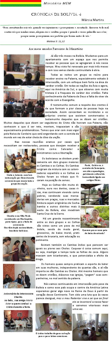 06. ) CENTRO DE APOIO MISSIONÁRIO DO BRASIL – CEAMISSVIAGEM MISSIONÁRIA PARA A BOLÍVIASanta