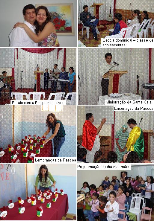 de junho de 2009 carta oração mês de JunhoTe exaltaré, mi Dios, mi Rey, y bendeciré tu nombre eternamente y para siempre. Sl 145:1 Treinta y tres 1 de junio de 2009. Graça e paz a todos. Louvado seja nosso Senhor Jesus Cristo que nos dá a vitória. A cada mês que passa aqui no campo, cada novo contato, cada culto realizado renova o sonho e a visão de Deus de alcançar esse povo tal amável para Cristo. Sinto-me vitorioso e privilegiado de levar o nome de Jesus a aqueles que não o conhece. Neste mês tivemos oculto do dia das mães. Foi lindo ver as crianças apresentando e homenageando suas mães e falando de Jesus para elas. Várias compareceram com toda a família e depois do culto tivemos um bom momento de comunhão. Oramos para que Jesus entre em seus corações e que sintam o amor de Deus. A cada oportunidade a semente da palavra é plantada em seus corações e no tempo do Espírito Santo ela florescerá e produzirá frutos. Neste mês foi aniversário do nosso querido pastor Humberto. Foi lindo ver os irmãos da igreja se mobilizando e interessados em homenagear o seu pastor. Tivemos um culto em que cada membro espontaneamente falou uma mensagem ao Pr. Humberto, destacando seu cuidado pastoral, ajuda e apoio neste um ano da igreja aqui. Tivemos a presença da família Raimundo (irmãos de Montevidéu) que nos alegrou e abrilhantou a festa. Neste mês de junho vamos começar um culto nas tardes de quinta-feira. A intenção é de atrair pessoas que por um motivo ou outro não podem sair de casa a noite. Contamos com as orações dos irmãos em favor desse culto. Estamos orando e sonhando com a igreja por projetos e expansão da mesma. Estamos sonhando com uma combi para a igreja. A intenção é ir aos bairros mais distantes da igreja trazendo crianças e idosos que não conseguem caminhar até a igreja. Atualmente o Pr. Humberto já faz esse serviço com o próprio carro. Uma combi além de facilitar, ampliaria o serviço. Orem conosco para que a vontade de Deus seja feita. Continuamos orando por um espaço maior para o templo e estratégias de evangelização para jovens e adolescentes. Neste mês estamos em ritmo de comemoração pelo aniversario de um ano da igreja. Queremos fazer uma grande festa de comemoração, envolver os irmãos da igreja, convidar descrentes. Estamos orando e planejando reformar a pintura do templo e do anexo onde ficam as classes das crianças, além de pequenos ajustes no espaço físico. Estamos animados com a notícia de que a missionária Lydia Tavares está nos últimos preparativos para retorno ao campo missionário. Em todo esse tempo no Brasil temos a certeza de que Deus está no controle e esperamos que ela esteja aqui em treinta y tres para o culto comemorativo de um ano do trabalho aqui. Obrigado pelo carinho, aos irmãos que tem orado, contribuído, e sonhado comigo nesse ministério. Ele não é meu e sim nosso, eu aqui no Uruguai e os irmãos aí no Brasil e juntos levando a Glória de Deus àqueles que não conhecem a Jesus. Motivos de oração: Agradecimento a Deus: Realização do culto de Dia das mães Aniversário do Pr. Humberto Alencar Pedidos: Pela conversão dos adolescentes Por uma porta para evangelização dos Jovens de 33 Pela adaptação da Patrícia e aulas de espanhol Pelo aniversário de um ano da igreja. Cláudio & Patrícia Vicentine; Missionários Servos do Deus vivo = = = 31 de agosto