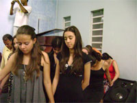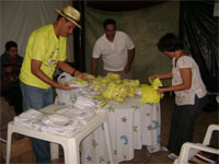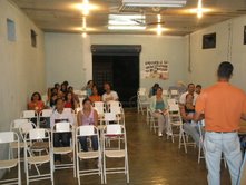 região, pão de queijo e pamonha, além das refeições normais. As aulas estão sendo uma benção. A comunhão, o carinho, as amizades, as visitas de pessoas queridas que tem vindo orar por nós, os momentos de lazer...tudo do bom e do melhor. Agora a noite, tivemos uma aula de fantoches com um casal da nossa equipe: pr. Wilio e Miriam. Que fantástico! Deu pra rir e aprender. A tarde o Sérgio telefonou, mais uma vez, para cada pastor, da região do rio araguaia que receberá nossa equipe. Todos estão muito animados e na expectativa de nossa chegada. As camisetas ficaram prontas e todos se alegraram em pegar a sua. Também foi passado o filme do projeto araguaia e todos se emocionaram, glorificaram a Deus e gritaram no final: "Espera a gente, que já estamos indo!" A Mari e a Gabí estão mais entrosadas. Elas estão gostando muito das pessoas da equipe. Elogiam, admiram, conversam... A Gabí disse: "Fiquei emocionada com o filme, pai. Eu quero ir logo para falar de Jesus para estas crianças."