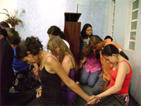 Andrey _ 01/08/2007 equipe matrinchã oi a paz do Senhor Jesus! meus amados, vivemos ali no rio do peixe dias maravilhosos, do dia 19 ao 21\07. onde tivemos uma media diaria de 35 criaças e 5 adultos ( ja crentes), destas crianças so uma nao se converteu, sendo no ultimo dia 34 converssoes, que benção .