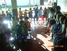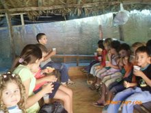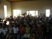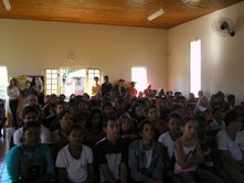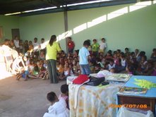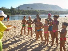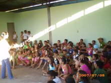 Dia 09 e 10 - O homem pode fazer planos mas, a resposta certa vem do Senhor!!! Nossas Equipes (as que nos deram notícias), tiveram dificuldades nas praias porque as crianças não estavam nelas! Na verdade, soubemos que neste final de semana é que chegarão as famílias para as praias de águas doces do rio Araguaia. Sendo assim estaremos nas praias na sexta-feira, sábado e domingo. Com isso Deus nos deu nova estratégia. As cidades desta região as escolas ainda estão em aulas. Várias de nossas Equipes estão entrando em escolas. Temos alcançados uma média de 150 crianças por turno, nas escolas, com a classe de 5 Dias onde contamos a história do Livro sem Palavras, história missionária O Milagre para Samuelito, cânticos e memorização de versículos. Também já está em andamento várias Escolas Bíblicas de Férias. Algumas com o tema: É hora de escolher com as crianças da Bíblia, da abvisual. Dia 11 - Nesta semana as equipes estão realizando, no período da noite, o Treinamento para Professores de Crianças. - Barra do Gaças: 73 alunos - Aragarças: 18 - Aruanã: 29 - Cocalinho: 20 - Araguaiana: 25 - Luis Alves: 50 As cidades Bandeirantes e Torixoréu realizarão o Treinamento dos professores na próxima semana. As equipes continuam realizando classes de crianças nas praias, lares, escolas, igrejas e creches. As novidades são: > Equipe Onça Pintada em Torixoréu: estão com classes em assentamentos alcançando crianças de famílias do MST. > Equipe Aruanã em Aruanã: Estão com classe entre crianças indígenas e em uma colônia de férias do SESI da cidade. > Equipe Tucunaré em Araguaiana: Estão evangelizando através de teatro. > Equipe Jacaré em Luis Alves: Estão com programa no rádio diariamente. > Equipe Ema em Cocalinho: Soubemos de um triste testemunho: No domingo ao convidar as crianças para as classes um garoto disse que não iria. Na segunda-feira a irmã do garoto insistiu para que ele fosse. Ele disse que iria, mas, não foi. Logo depois ele foi brincar com outra criança colocando fogo no tanque de gasolina de um carro. O carro expoldiu matando o menino. Lamentamos tanto ele ter perdido a oportunidade de ouvir sobre o Salvador. Ore conosco para que a Palavra chegue ao coração de cada criança antes que seja tarde demais! Equipe Tucunaré. Equipe Garça. classe evangelística na escola Dia