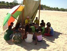 . . . Dia 14 - Equipe Garças em Aragarças e Pontal do Araguaia: fotos do trabalho na praia, e classe de cinco dias, treinamento de professores. .