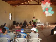 Araguaiana.Tivemos no domingo na EBD com 21 crianças. Nossa clase de 5 dias, esteve com uma média de 112 crianças. Trabalhamos em uma creche e pré-escola da escola Laura Vicuña, tinham 51 crianças e 8 adultos, foi feito fantoche e livro sem palavras. Estamos muito felizes de poder lançar a semente em seus corações. .