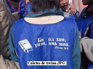vieram para receber oracao. Amados amanha estaremos indo para o retiro da missao, e voltaremos no domingo. Este e o retiro que a missao faz todos os anos com todos os missionarios. Peco que os irmaos orem para que tenhamos um bom tempo de comunhao e que sejamos desafiados a coisas novas no nosso ministerio aqui. Na terca feira da semana que vem estarei( Jardel) indo com o Tchuca e um grupo de Americanos para Tugrug (cidade que fica a 500 km de Ulaambaatar). Estaremos indo com a intencao de visitar as pessoas que aceitaram a Jesus conosco no mes de Julho e tambem fazermos avangelismo. Por favor orem pela nossa viajem e pelo tempo que vamos ter com as pessoas la. Sonhamos em ver uma igreja implantada naquele local. Fiquem com Deus