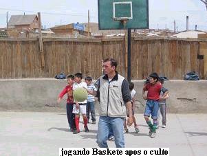 . Ola amados! Estamos ainda se adaptando em Bayankhorgor apesar de ja estarmos aqui a mais de um mes. Joshua esta estudando em casa pelas manhas com um sistema de Home Schooling, um sistema americano de estudar atravez de videos. A tarde ele esta indo a uma escola Mongol onde esta aprendendo alem de escrever e ler em mongol estta tambem aprendendo Japones. realmente estamos surpresos com o que Deus tem proporsionado a ele em termos de estudo. Considerando que estamos perto de um deserto. Joshua e Emily sao a atracao aqui e quando eles saem para brincar la fora muitas criancas se ajuntam para brincar com eles. O Joshua e a atracao nas lutas tradicionais mongois. Os meninos mais velhos gostam de ensinar o Joshua alguns movimentos. As lutas tradicionais Mongois nao sao violentas. temos insentivado o Josha a convidar seus novos amigos a irem a igreja no cultodas criancas e ele tem feito isto com dedicacao. Nossa Igreja aqui e outras estamos organizando uma campanha evangelistica no estadio da cidade que tem a capacidade para 5 mil pessoas. O pregador e um Correano de uma igreja na Coreia do Sul na qual visitei uma vez no ano de 2004. Cremos que vai ser uma colheita tremenda para o reino de Deus, e muito trabalho de discipulado depois, amem! O evento no estadio sera no dia 20 de Setembro as 14 horas horario local da Mongolia. Contamos com as oracoes dos amados, Em Cristo, Jardel, Inez, Joshua e Emily _ Bayankhongor Mongolia (20/09/06) 20/08/06 Graca e paz! Estamos todos bem aqui em Bayankhongor. Gracas a Deus chegamos em seguranca, apesar de que quase tivemos um acidente na estrada. Estava dirigindo a mais ou menos 100 km/h e por um segundo me distrai com nosso cachorro PJ que estava querendo pular para o banco de tras e quando olhei estava ja com a metade do carro para fora do asfalto, quando percebi tentei voltar a pista, e os pneus chegaram a cantar e fomos para o outro lado da pista na contra mao. O carro entao quase saiu fora do outro lado, tive que clamar pelo nome de Jesus e gracas a Ele voltamos a pista com seguranca. Nessas horas voce ve o efeito de orar antes de viajar, Chegamos em BH sem saber onde iriamos morar. Tinhamos um lugar provisorio e estamos aqui ate hoje domingo 20 de Agosto. Quando nossa mudanca chegou fomos ajudados pelos jovens da igreja, que ao todo foram umas 15 pessoas. Foi a mudanca mais rapida que eu ja vi. Vamos morar em um apartamento de dois comodos, por um periodo de 2 meses e entao vamos ver o que Deus vai nos proporcionar. Queremos morar na ger distrito em uma casa, mas ainda nao achamos uma adequada para nossa familia. Deus provera! Os lideres da igreja estao em Ulaambaatar para uma conferencia e nos fomos ao culto hoje e estava fantastico. Mais ou menos uns 20 testemunhos e o pessoal nao queria ir embora. Depois do culto fomos convidados a participar de um casamento de um membro da igreja. Foi bom, pois Joshua e a Emily ja puderam comecar a fazer alguns amiguinhos. Estamos animados com o que Deus esta fazendo aqui e do que poderemos estar envolvido. Todos os dias as 7 da manha tem culto de oracao e eles tinham parado por uma semana justamente semana passada, mas gracas a Deus recomecaremos amanha de novo. Estamos felizes aqui e cremos que Deus vai fazer maravilhas e nos usar para fazer crescer o seu reino nesta parte do mundo. Obrigado pelas sua oracoes, O Senhor seja contigo e te abencoe, Em Cristo, Bayankhongor, Mongolia Jardel, Inez, joshua e Emily 13 Ago/06 Ola Amados! Uma das coisas melhores em servir ao Senhor e que temos que estar prontos para mudancas. Mudancas em nosso estilo de vida, relacionamento com as pessoas e com Deus. Muitas vezes temos que estar prontos para mudarmos de cidade, estado ou pais. Desta vez Deus tem nos dirigido a mudarmos para Bayankhongor centro Oeste da Mongolia. BH fica a 630 km da Capital Ulambaatar onde trabalhamos como missionarios pelos ultimos 5 anos. Bayankhongor fica no norte do Gobi Deserto, uma regiao muito seca, onde durante o ano ocorrem muitas tempestades de areia. No inverno a temperatura fica em torno de -25 a -30 C. A populacao de BH e de 30 mil pessoas e em todo o estado chega a mais ou menos 80 mil habitantes. Em todo o estado tem em torno de 20 pequenos vilarejos de uma populacao aproximadamente de 3 mil pessoas. BH faz divisa com outros 5 estados e com a Republica da China. Ainda falando em mudancas, tambem teremos mudancas no funcionamento do projeto aqui em Ulaanbaatar onde o Chuka estara assumindo a lideranca do projeto. Ele juntamente com outros da missao estarao dando continuidade na escolinha. Eu estarei dando cobertura a eles vindo a Capital uma vez a cada 2 ou 3 meses. Orem pelo Chuka para que ele possa alcanar mais vidas atravez do Futebol. Em Bayankhongor estaremos envolvidos com futebol, onde abriremos um centro de treinamento para criancas e jovens vinculado a Igreja. Parte da mudanca e que estaremos nos envolvendo diretamente com implantacao de igrejas em lugares ainda nao alcancados e com treinamento de lideranca. Um dos alvos e comecar uma escola de treinamento para lideres no ano que vem. O tipo de treinamento que sera estabelecido ainda nao esta definido. Nos estamos ainda fazendo planos, mas sabemos que o coracao do homem pode fazer planos mas a resposta certa vem de Deus. No mes que vem estaremos tirando alguns dias com a lideranca de BH para orarmos e pedir direcionamento de Deus para o futuro. Estaremos mudando na terca dia 15 de Setembro e ainda nao temos um lugar certo para morarmos. Temos um lugar provisorio para alguns dias e depois Deus provera. Nao deu certo a compra daquela casa que enviamos a foto ha um tempo atras. Estaremos procurando uma nova casa! Estamos felizes com a mudanca, pois sempre tivemos um desejo de trabalharmos no interior da Mongolia e agora o Senhor esta nos dando esta oportunidade. " Aquele que quiser salvar a sua vida perde-la-a, mas quem perder sua vida por causa de mim e do evangelho, esse a salvara." Mc 8:35 Deus os abencoe, Em Cristo, Jardel, Inez, J