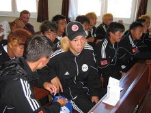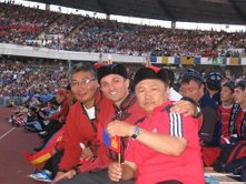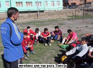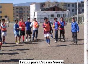 anteriores. Jornal e TV estavam presentes para saber o que os meninos da Mongolia podiam apresentar. Jogo muito tenso especialmente para mim que passei os ultimos 4 meses os treinando quase todos os dias. Bem, o jogo foi bastante igual mas nos fizemos 1 a zero com um gol de falta. O jogo estava acabando ja havia passado 2 minutos ate que um dos jogadores chutou a bola no peito do nosso zagueiro dentro da area e o Juiz deu penalty. Eles empataram e o jogo acabou. Ate nos jornais da suecia falaram que o juiz ajudou os alemaes. No proximo jogo perdemos de 2 a 1.