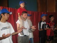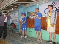 27/06/06 Graca e paz! Tivemos um final de semana fantastico em Sukhubaatar interior da Mongolia( Cidade que fica a 550 km de Ulaanbaatar capital). Saimos na sexta feira passada eu, Joshua ( meu filho) e mais 6 mongois da escolinha de futebol e voltamos no domingo a tarde. Foi a primeira vez que fretamos um aviao da Azas do Socorro e foi a primeira vez que 3 dos meninos viajaram de aviao. Foi uma experiencia boa para todos nos. Foi tambem um tempo abencoado em varios aspectos. Durante o dia organizamos clinicas de futebol e campeonato para as criancas, e durante a noite cultos evangelisticos. Tivemos 60 criancas entre 10 a 18 anos participando de todas as atividades. Durante os cultos ensinamos musicas de louvor e foi bastante contagiante ve-los cantando e dancando durante o louvor. Apresentamos um show com fantoches e outras pecas evangelisticas. Demos alguns testemunhos e Dugree convidou os jovens a aceitarem a Jesus em seus coracoes e todos reponderam positivamente. Gloria a Deus! Fizemos a abertura oficial da escolinha em Sukhubaatar com a presenca do secretario de esportes da cidade e foi televisionado para o canal local. Sukhubaatar United e agora uma filial da nossa escolinha UB United aqui da Capital. Dugree agora vai poder dar continuidade na escolinha com o apoio do governo local e nosso aqui de Ulaanbaatar. Ele vai poder estar discipulando estes novos convertidos atravez da escolinha. Louvamos a Deus pela oportunidade em estar usando o futebol para alcancar pessoas para o reino. Desta vez distribuimos bem as tarefas e eu quase nao tive muito trabalho a fazer, apesar de estar supervisionando tudo e ajudando em algumas decisoes e encontrando com pessoas importantes que queriam me conhecer. Assim tive mais tempo com o Joshua o que foi muito gostoso para nos dois. Ele tambem fez alguns amiguinhos la e era o centro das atencoes pois nao e todo dia que eles veen uma crianca loira de olhos azuis por la. As vezes era ate dificil pois muitas pessoas queriam beija-lo. TV Programa Semana passada Jardel participou em um programa esportivo em uma TV aqui na Mongolia. O programa era sobre a viagem para a Suecia em Julho e sobre futebol. Foi interessante, pessoas podiam telefonar e fazer perguntas. "Foi uma experiencia e tanto estar em um estudio de televisao e falar ao vivo em Mongol. Tive que me concentrar bastante nas perguntas feitas pelo telefone, pois nao e facil entender tudo o que eles dizem especialmente quando voce nao ve a pessoa que esta falando.O reporter me perguntou na entrevista o por que vim para a Mongolia, falei abertamente que era Cristao e que minha igreja no Brasil me enviou para ajudar o povo Mongol. A entrevista foi muito boa pelo que ouvi dos meus amigos Mongois." Jardel No treino de hoje tivemos outro canal de TV filmando e intrevistando. Tambem hoje Jardel recebeu um telefonema do canal de TV que esta cobrindo a copa do mundo ao vivo. Eles o convidaram a comentar o jogo de amanha ao vivo de Brasil & Gana. "Preciso de muita sabedoria pois nao e muito facil fazer isto em Portugues quanto mais em Mongol. Ao mesmo tempo louvo a Deus por estas oportunidades que poderao abrir portas para o crescimento do reino de Deus na Mongolia." Jardel Queridos... Obrigado por toda oracao e suporte Enviaremos algumas fotos em outro e-mail! No amor de Nosso Senhor Jesus Cristo Jardel, Inez, Joshua e Emily - Mongolia