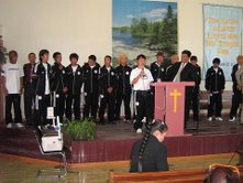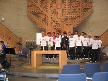 na Igreja. estamos facinados com o que Deus fez e esta fazendo.Depois de 3 meses trabalhando com os rapazes do time que vai para a Suecia resolvemos leva-los a igreja como preparacao para a Viagem. Haviamos feito o convite antes mas nao foi imposto como desta vez. Bem, todos vieram vestidos com o agasalho do UB United e sentamos todos juntos. Era a primeira vez que a maioria deles estavam entrando em uma igreja. Haviamos antes falado de Jesus durante algumas reunioes e oramos com eles algumas vezes. No Domingo um dos rapazes que tem dado alguns problemas no time, chegou falando que assistiu o filme Jesus na noite anterior. No final do culto foram chamados a frente aqueles que queriam oracao, entao alguns dos meninos perguntaram se tambem poderiam ir a frente. E claro que podem, Jardel respondeu! Havia somente um pastor orando pelas pessoas, entao Jardel foi a frente para orar pelos meninos, e pediu a eles que fechassem os olhos e se concentrassem em Deus. Comecou a orar, e houve muito quebrantamento entre eles, o rapaz que havia assistido ao filme Jesus era o que antes demostrava mais resistencia ao evangelho, mas naquele Domingo ele foi o que mais chorou enquanto recebia oracao, seu nome e Gatoo, estejam orando por ele e pelos outros rapazes tambem. Jardel