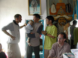 December 27, 2006 Milagres de Natal Paz! Uma voz que dizia: "Levanta e anda" O Senhor tem feito maravilhas aqui em Bayankhongor. No e-mail passado mencionei uma moca da Igreja por nome Nandan que ficou paralitica de uma hora para outra sem explicacao medica. Bem, ela ficou paralizada da cintura para baixo no dia 17 de dezembro 2006. Na segunda e terca feira 18 e 19 alguns da igreja foram visita-la na quarta dia 20 eu ( Jardel) fui ao hospital e orei por ela. Na mesma noite ela sentiu vontade de ir ao banheiro e ouviu uma voz que dizia;" levanta e anda" ela creu na palavra e se levantou ainda com um pouco de dificuldade mas conseguiu ir ao banheiro e voltar sozinha. Aleluia! No hospital tinha uma crianca com febre alta fazia dois dias e a mae estava preocupada com a crianca pois dava remedio para abaixar a febre e nao abaixava. Me levaram para orar pela crianca, a mae autorizou que eu orasse, apesar de nao ser crista. Orei e na mesma hora a crianca comecou a suar e a febre abaixou imediatamente. E logo em seguida os medicos vieram e deram alta para a crianca dizendo que ela estava bem. Gloria a Deus! Uma irma da igreja que trabalha no hospital me disse que a mae da crianca prometeu ir a igreja porque ficou impressionada com o que aconteceu. No culto de Domingo vespera de natal veio mais ou menos umas 600 pessoas para o culto. Foi uma festa fantastica muitas apresentacoes de danca, coreografia, peca teatral sobre o nascimento de Jesus, louvor, pregacao do evangelho onde muitas pessoas tomaram uma decisao por Jesus. Gloria a Deus! Visita do Governador do Estado de Bayankhongor O Joshua estuda em uma escola Mongol onde a mulher do governador e uma das diretoras. Por nossa missao JCS, fazer muitos servicos em parceria com o governo passamos a conhecer o governador e familia. Por algum tempo temos tido um relacionamento de amizade que aconteceu naturalmente. A algum tempo temos convidado sua familia para vir nos visitar e comer uma comidinha Brasileira. Na vespera do natal que para os Mongois nao cristaos e so mais um dia normal, recebemos uma ligacao do governador perguntando se poderia vir nos visitar. Claro que os recebemos e tivemos um tempo fantastico. Oramos juntos na hora do jantar, ele me perguntou sobre a Igreja em um espirito de amizade, mostramos fotos do Brasil, ele ate sentou em nossa cama e pediu para que tirassemos uma foto em familia. Logo vou convida-lo a fazer uma visita a nossa igreja e em breve o Senhor o Salvara e a toda sua familia. Deus esta se movendo poderosamente nestes dias aqui em Bayankhongor. Se puder venha ate aqui nos fazer uma visita e ver as maravilhas que o Senhor esta fazendo. Temos curtido bastante a visita da minha mae! Em Cristo, Jardel, Inez, Joshua e Emily Feliz