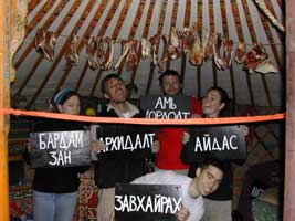 ![]() Joshau e Emily na construcao da Ger ![]() parede da Ger 27/09/06 _ Ola Amados! A cruzada evangelistica foi uma bencao! Em torno de 4 mil pessoas vieram ao estadio para a cruzada. "O estadio nunca ficou tao cheio" disse o Governador do estado. A igreja organizou de uma forma fantastica e foi uma festa tremenda que acabou com pessoas aceitando a Jesus em suas vidas e danca no campo do estadio. O Governo de Bayankhongor esta muito aberto ao evangelho especialmente o Governador que ainda nao se converteu, apesar de ter feito bons comentarios a respeito dos cristaos. Na hora da pregacao e apelo ficaram umas 2 mil pessoas que realmente pareciam estar interessadas na mensagem. Depois de orar aceitando a Jesus muitos entraram no campo e comecaram a dancar durante o louvor no final. Foi uma festa so! Ha muito trabalho a ser feito aqui na area de discipulado e treinamento. Estamos orando para comecar uma ETED da jocum ( Escola de treinamento e Discipulado) no ano que vem aqui para melhor equipar lideres das Igrejas. para isto e necessario uma serie de documentacao e autorizacoes. Orem quanto a isto, para que Deus faca a sua vontade. Deus os abencoe! Jardel, Inez, Joshua e Emily Bayankhongor Mongolia Cruzade Pictures! .