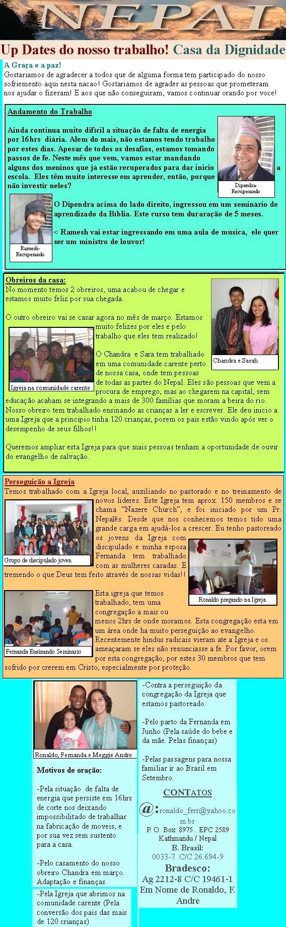 de 2009 Pedidos de oracao urgente! Ronaldo e Ferananda-Nepal Queridos