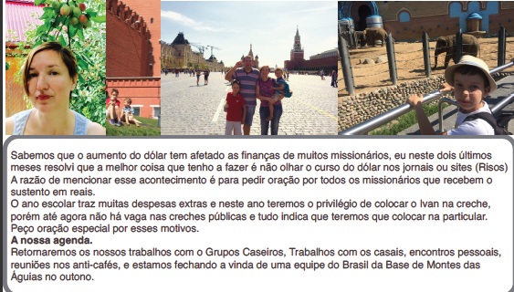 poder e conhecimento de Deus; 2- Pelos jovens e adolescentes da Rússia -Sibéria