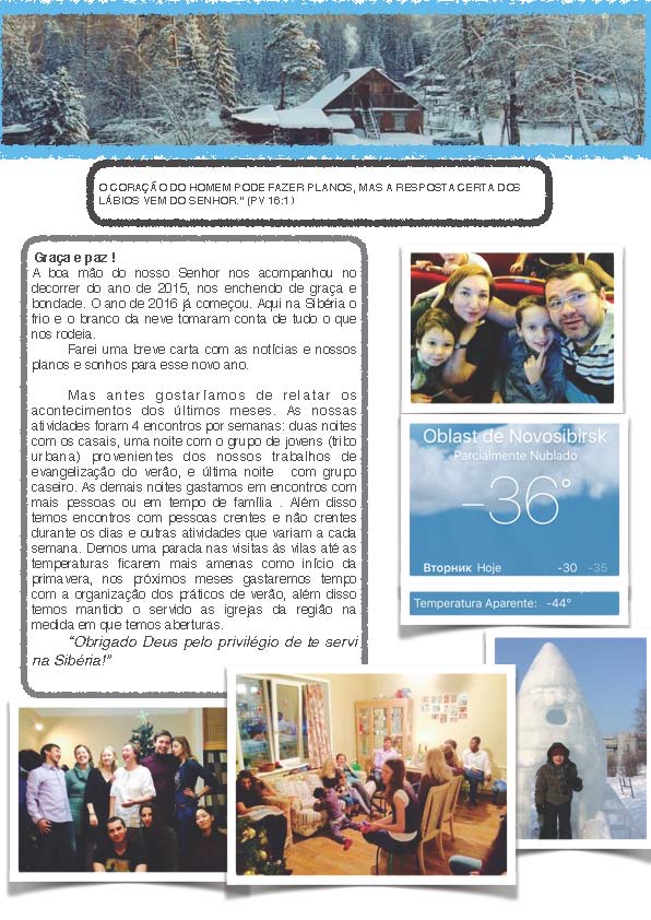que é a Sibéria, vocês são a expressão da fidelidade de Deus nas nossas vidas.